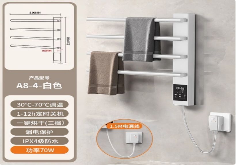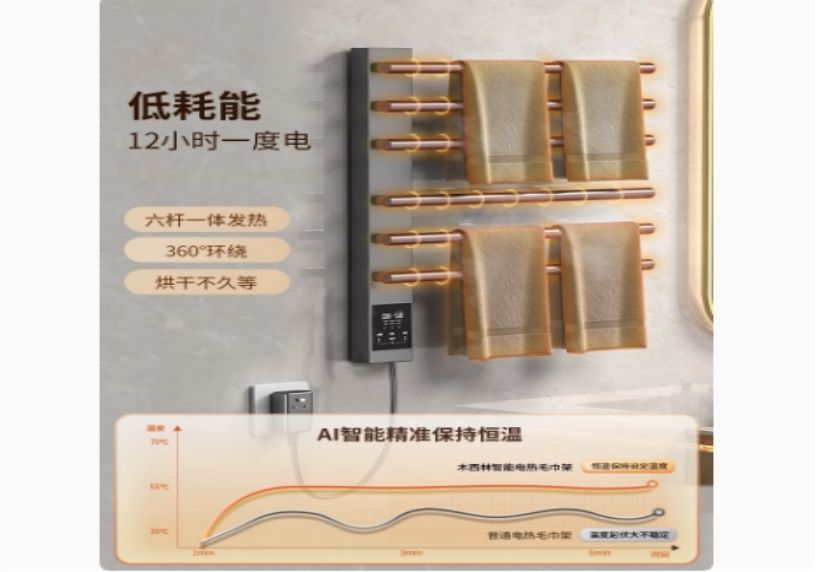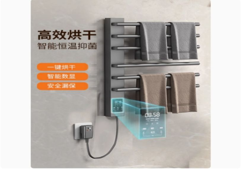 智能电热毛巾架卫生间浴室明暗装小尺寸打孔碳纤维烘干挂件
