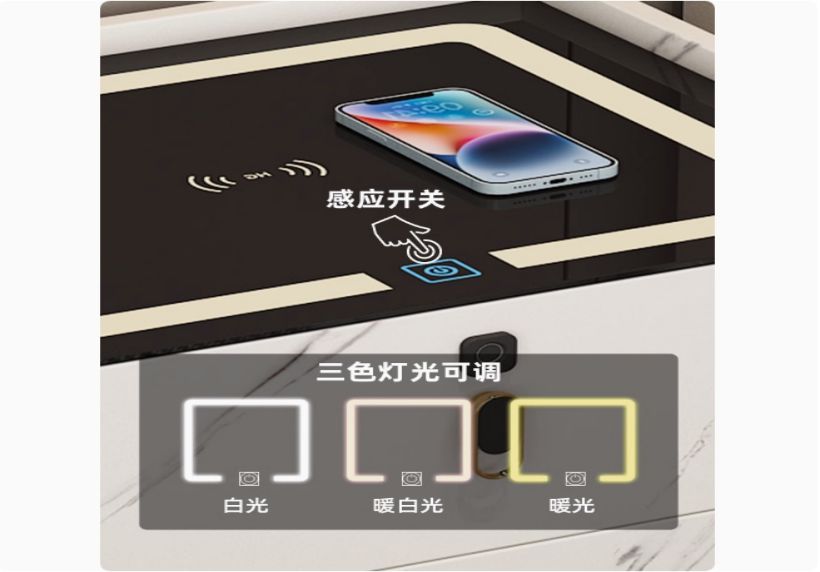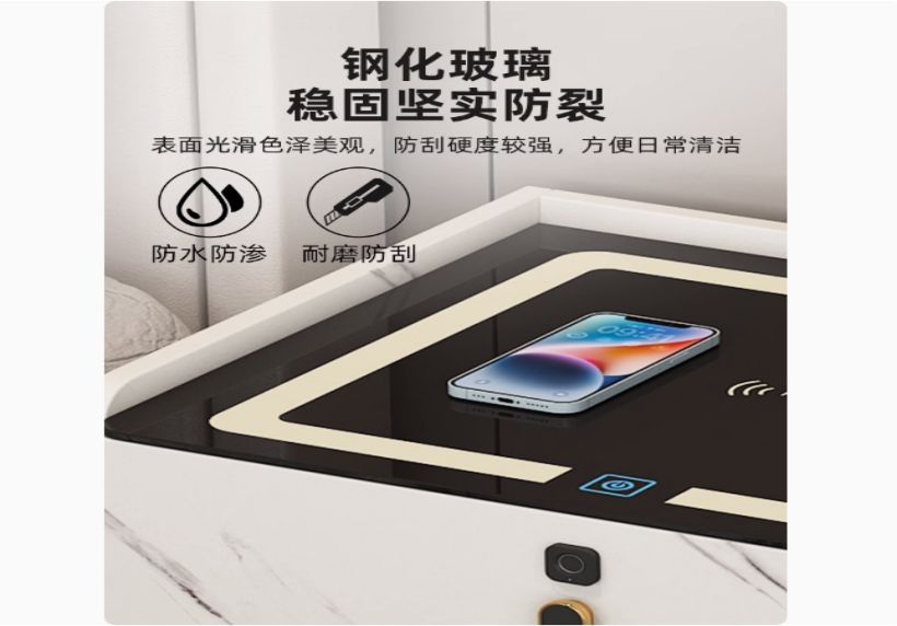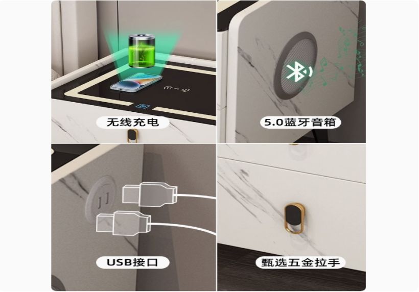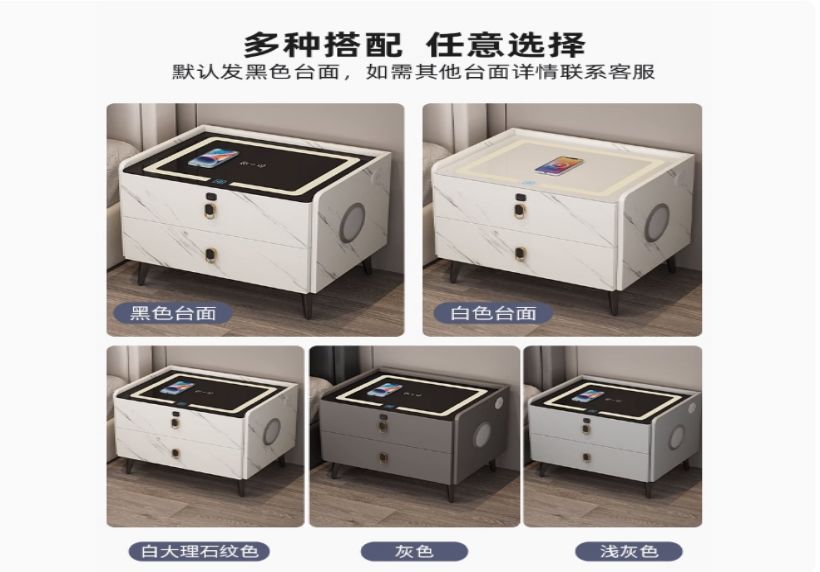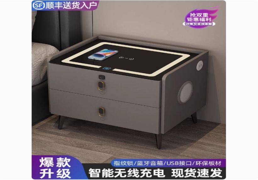【灰色两屉】三色灯+无线充电+USB接口+指纹锁+蓝牙音箱