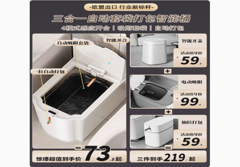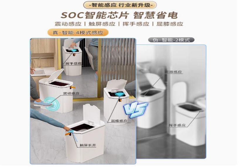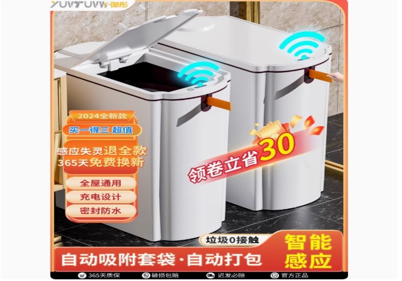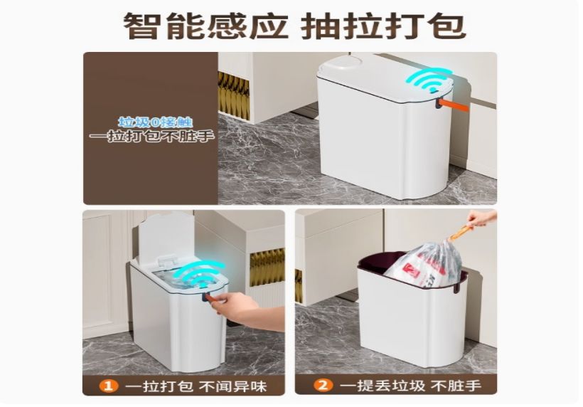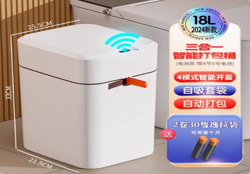 18L智能防水垃圾桶【蓝光+4模式感应+自吸套袋+提拉打包】赠30只逸拉袋