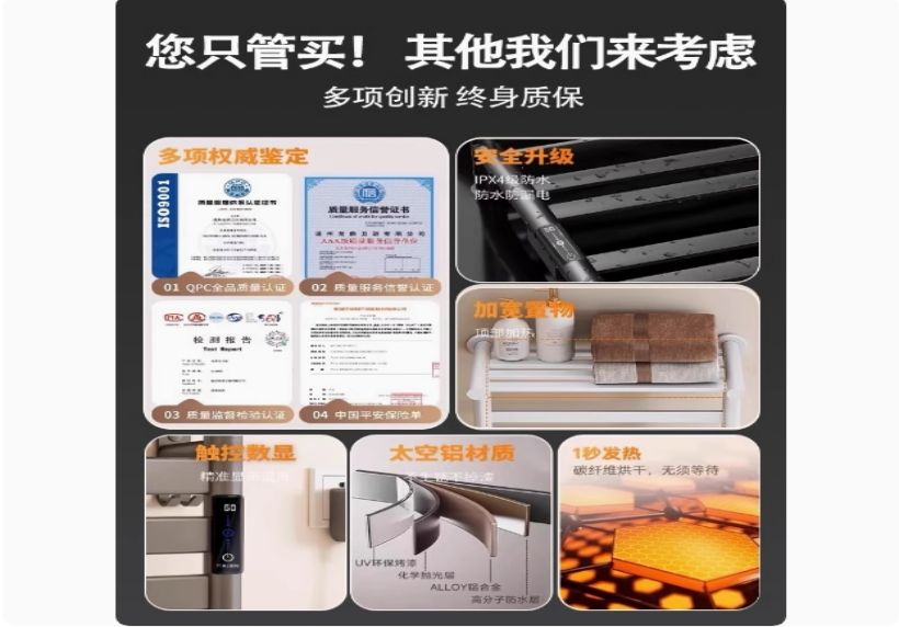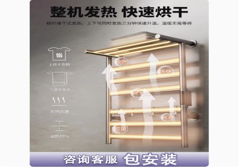 米家电热毛巾架卫生间家用加热浴巾架智能烘干杀菌(APP智控款)