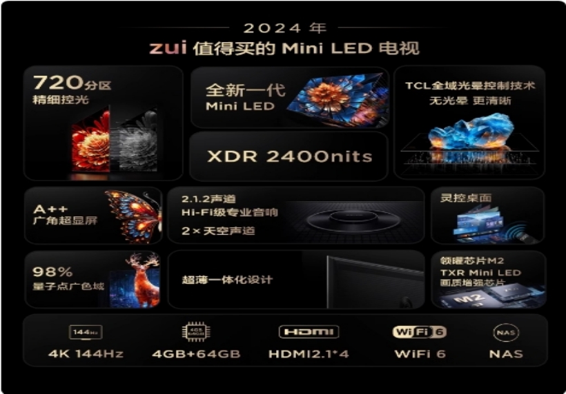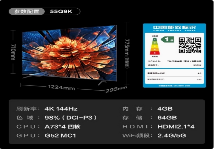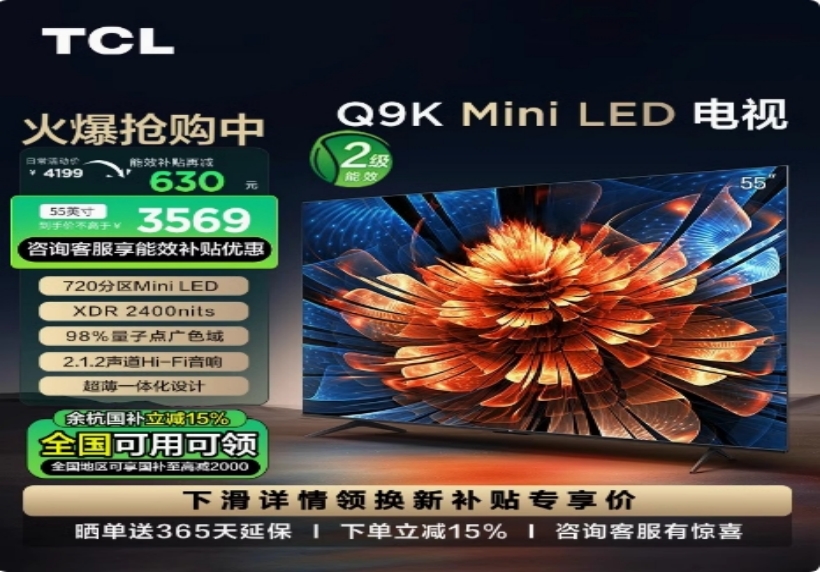 55英寸Q9K Mini LED、2400nit、量子点广色域