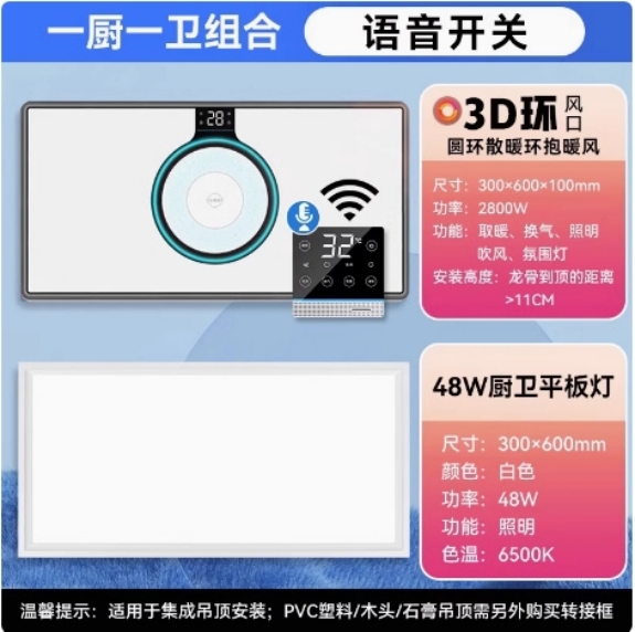 6D抑菌热能环全屏照明 语音触屏+48W长灯