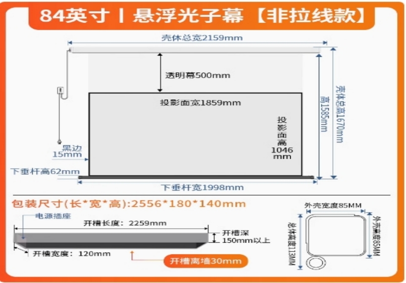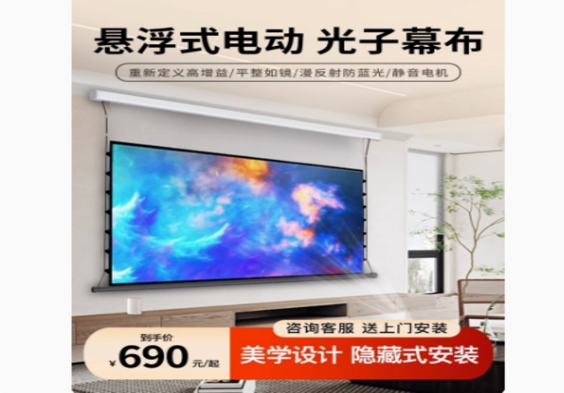 悬浮电动投影幕布家用【语音+联动】极灰8K光子---抗光 84寸