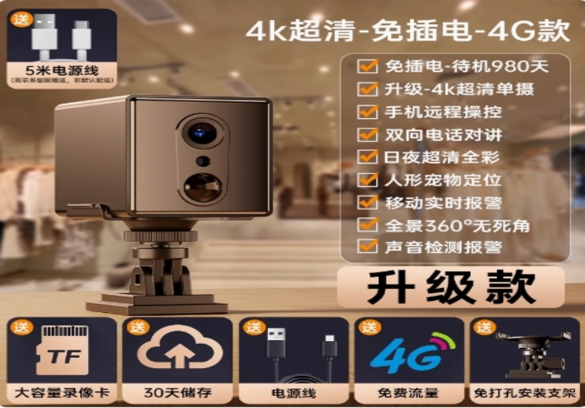 【免插电4G升级款】单电池待机980天+4K超清360°